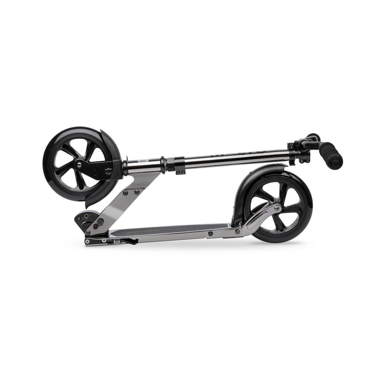 koloběžka je vybavena velkými 200 mm PU kolečky, která ve spojení s kvalitními ložisky poskytují rychlou a dynamickou jízdu s minimálním odporem. Přední a zadní plastové blatníky chrání jezdce před vodou a nečistotami, zatímco zadní blatník slouží i jako nášlapná brzda. koloběžka Micro Classic Neochrome Black je dále osazena stabilním stojánkem na spodní straně nášlapné desky, což zvyšuje její praktičnost.