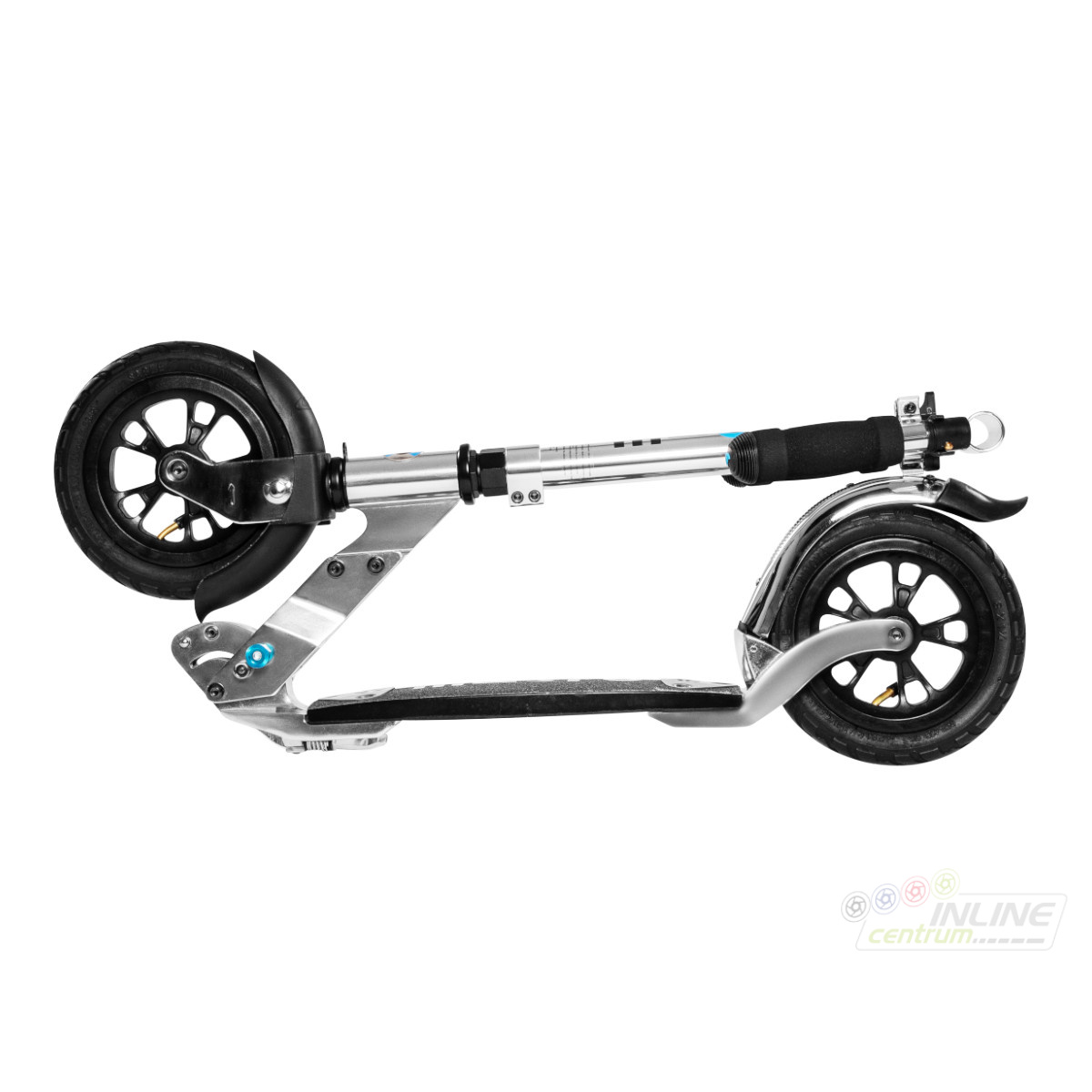 Základna koloběžky je vyrobena z frézované slitiny hliníku. Díky tomu má koloběžka Micro Sprite výborný poměr pevnosti a nízké hmotnosti. koloběžka je osazena stojánkem.