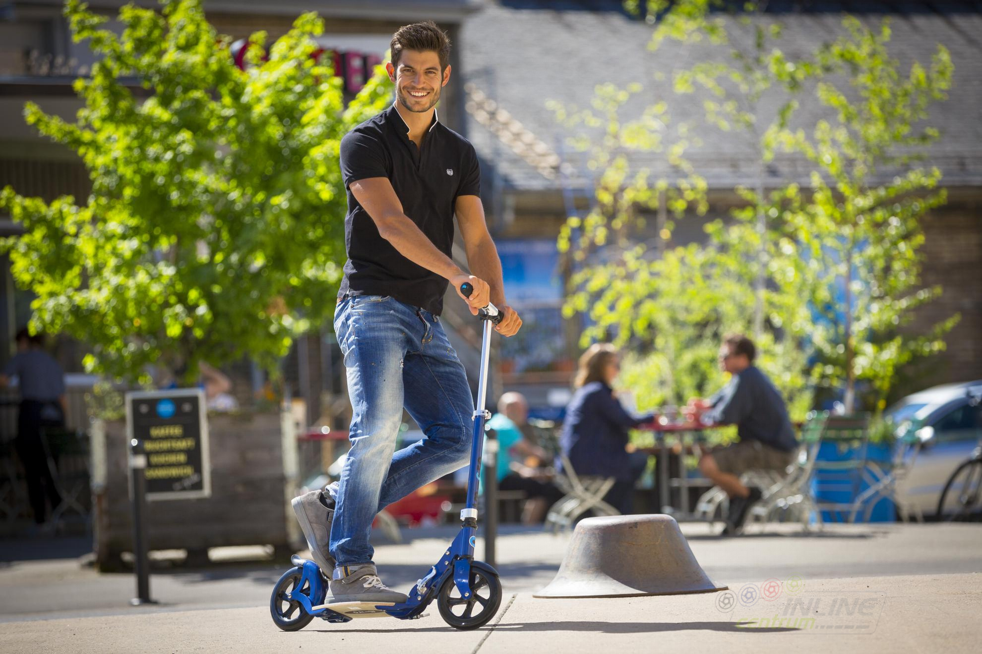 Hlavními přednostmi této koloběžky je pružná patentovaná nášlapná deska z kompozitních materiálů, která v kombinaci s pevnými kolečky o velikosti 200 mm vytváří velice pohodlnou a rychlou skládací koloběžku. Tato deska eliminuje vibrace a při odrazu se mírně prohýbá. Díky této technologii je koloběžka uzpůsobená jak na jízdu po stezkách, tak i do města.