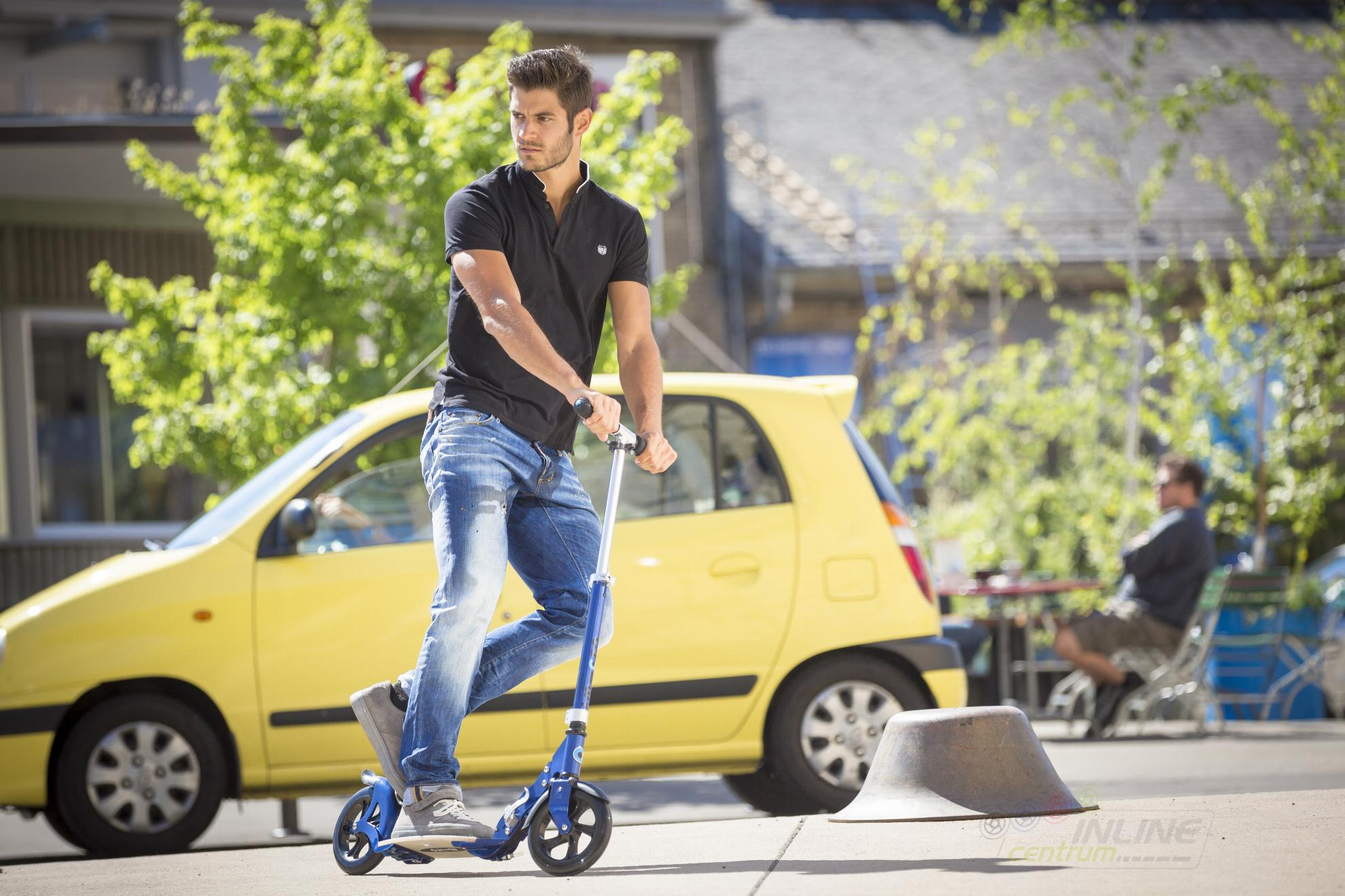 Řidítka mají sklápěcí rukojeti, díky čemuž lze koloběžku složit do velmi kompaktních rozměrů. Řídítková tyč je vysouvací a nastavitelná ve velkém rozsahu od 72 do 102 cm.