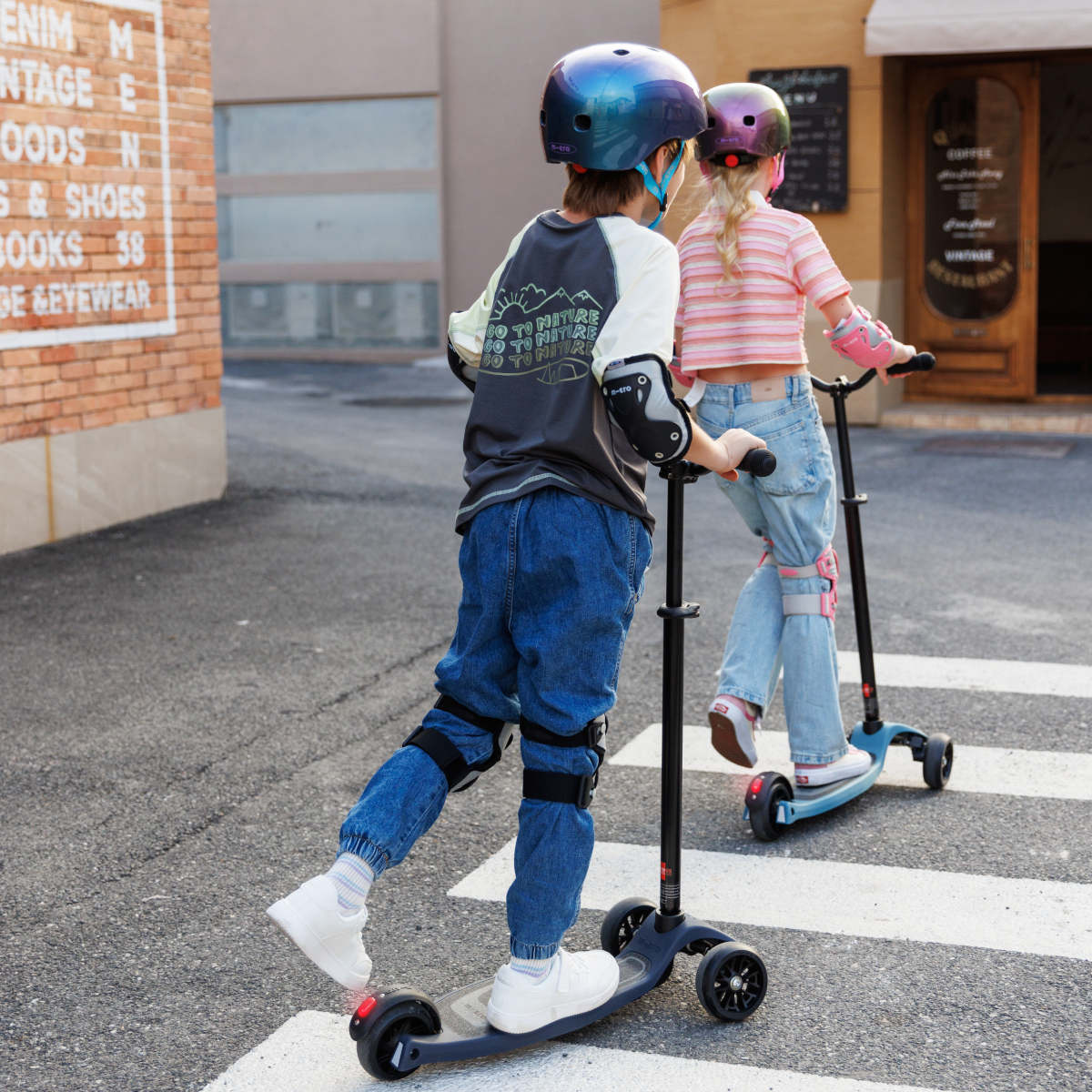 Díky širšímu rozchodu předních koleček a jejich nadstandardní šířce (24 mm) nabízí kickboard mimořádnou stabilitu. kolečka lépe přilnou k povrchu, tlumí drobné nerovnosti a zajišťují hladkou, plynulou jízdu. Navíc se zatáčí náklonem – přenesením váhy jezdce do strany – což vytváří jedinečný pocit, jako byste surfovali, skateboardovali nebo sjížděli svah na snowboardu. Výsledkem je zábavná, bezpečná a návykově příjemná jízda, kterou si oblíbí starší děti, junioři, ale i dospělí.