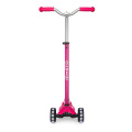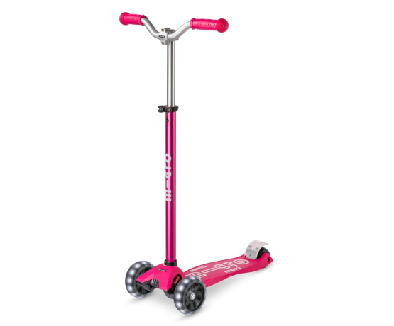 Dětská koloběžka Micro Maxi DeLuxe LED je bezpečná, stabilní a zábavná koloběžka určená pro starší děti, juniory a teenagery s doporučenou nosností do 50 kg. koloběžka zlepšuje rovnováhu, koordinaci a motorické dovednosti, jež napomůžou k přechodu na kolo či jiné prostředky. Hlavními přednostmi je speciální patentovaný mechanismu, který zatáčí nakláněním řídící tyče a lehkým přenesením rovnováhy, křídlová řídítka do tvaru V, přední svíticí kolečka, polohovatelná řídítka, výškově nastavitelná řídící tyč, vysoká stabilita pomocí 3 koleček a nízká váha.