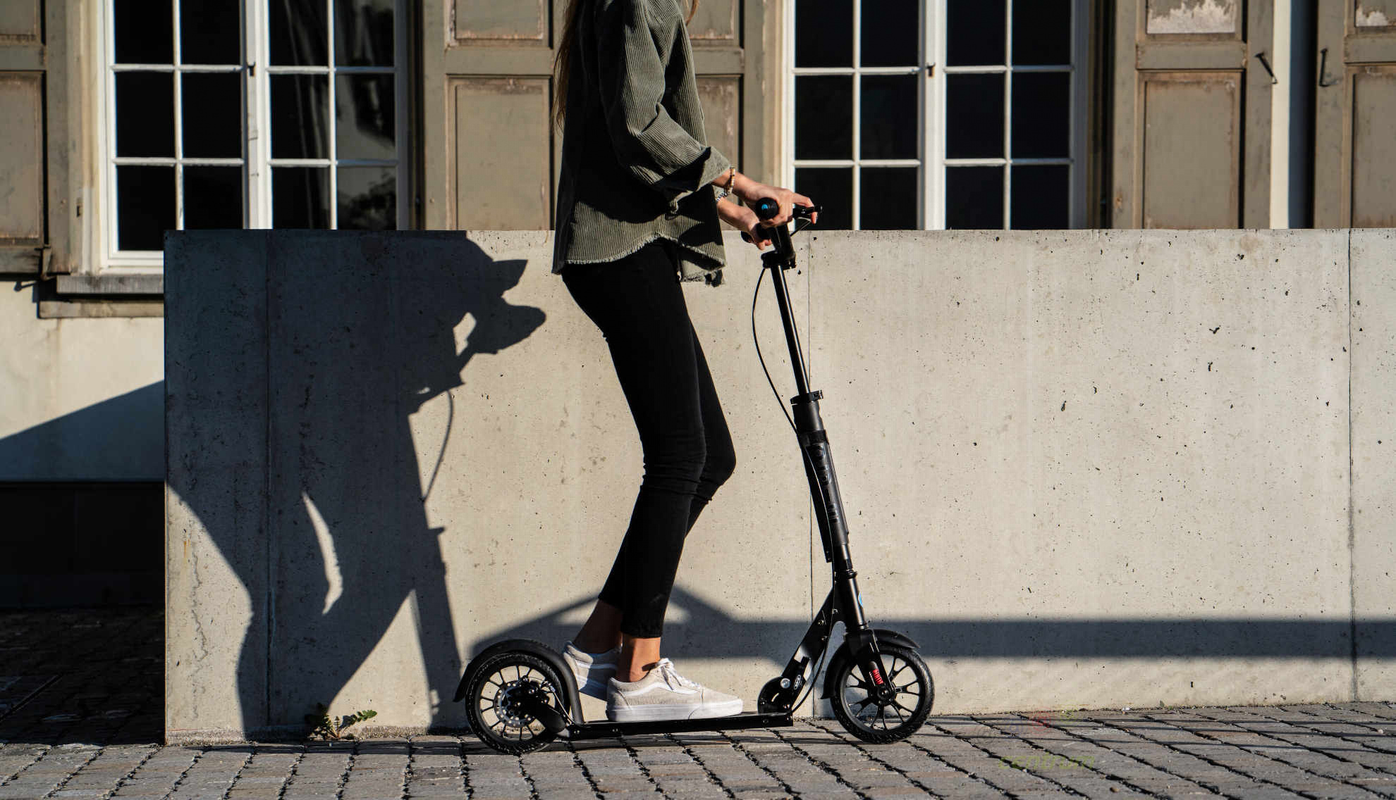 Černá koloběžka Micro Metropolitan je navržena ve Švýcarsku a je zárukou kvality a dlouhé životnosti.