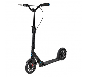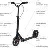 Předností této koloběžky jsou křídlová řídítka do tvaru V, která jsou zároveň polohovatelná, ale nedají se složit. Další výhodou je integrované LED světlo na baterie. Řídítková tyč je vysouvací a nastavitelná ve velkém rozsahu od 80 do 103 cm.