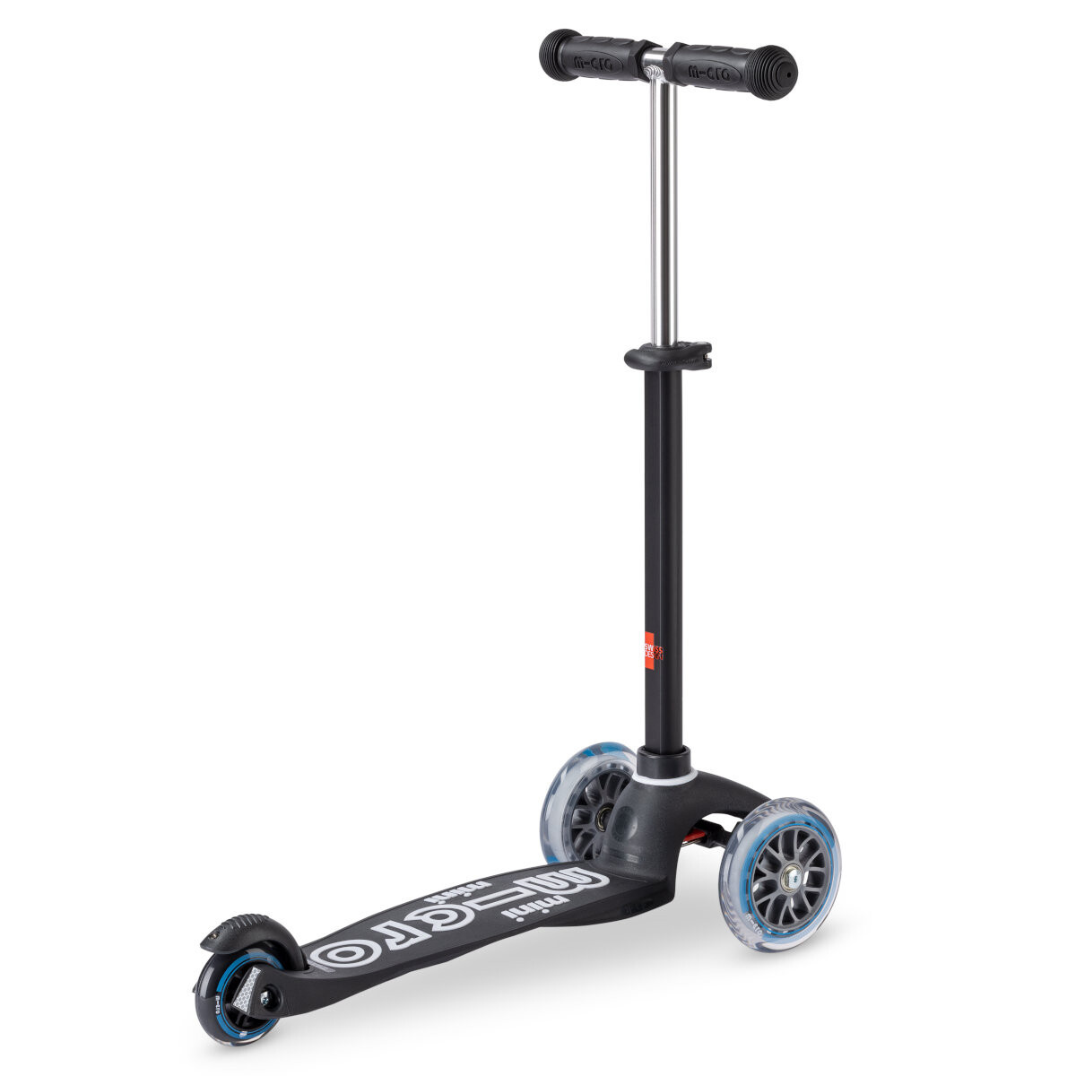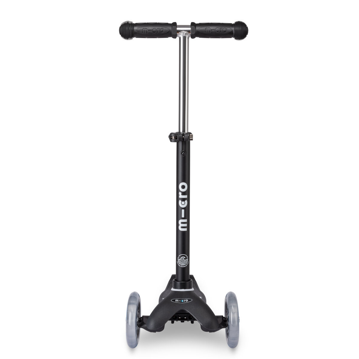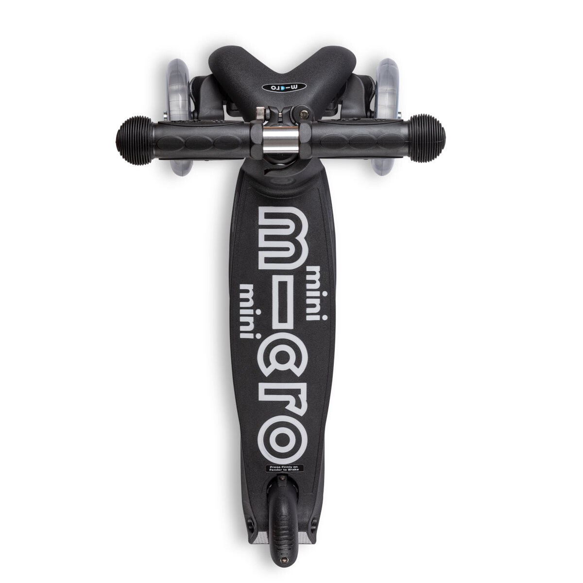 Černá svítící dětská koloběžka Micro Mini DeLuxe ECO LED je navržena ve Švýcarsku a je zárukou kvality a dlouhé životnosti.