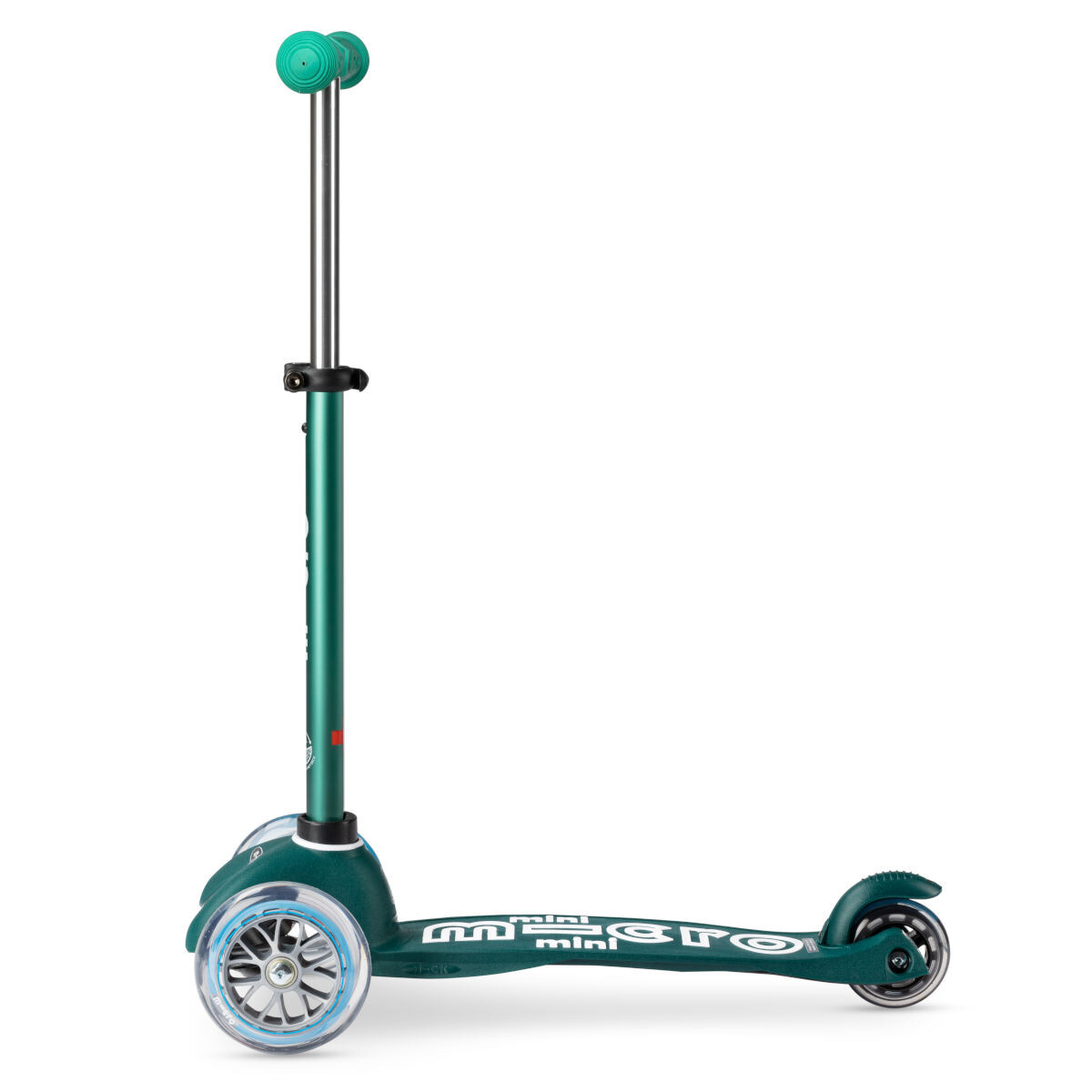 Zelená svítící dětská koloběžka Micro Mini DeLuxe ECO LED je navržena ve Švýcarsku a je zárukou kvality a dlouhé životnosti.