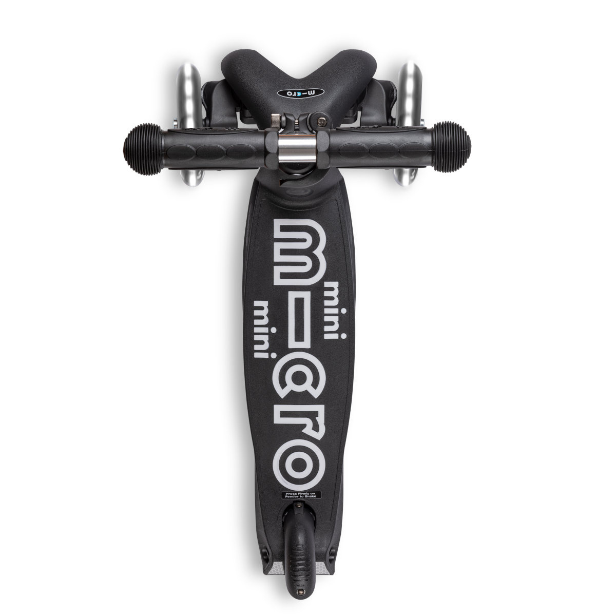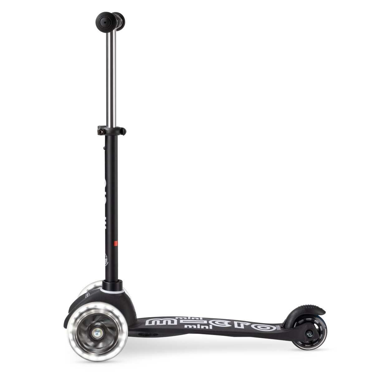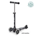 Černá svítící dětská koloběžka Micro Mini DeLuxe ECO LED je navržena ve Švýcarsku a je zárukou kvality a dlouhé životnosti.