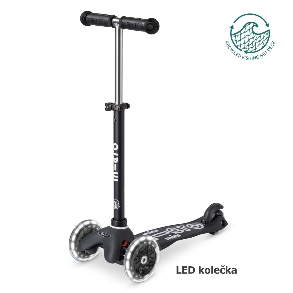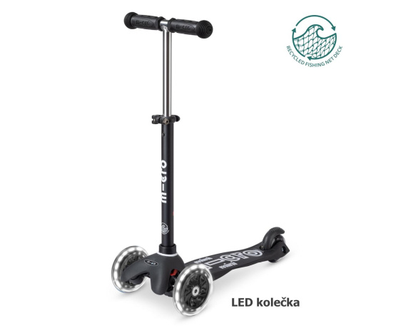 Dětská koloběžka Micro Mini DeLuxe ECO LED byla vyvinuta ve spolupráci se švýcarskými lékařskými experty a je určená předškolním dětem ve věku cca od 2 do 5 let. koloběžka zlepšuje rovnováhu, koordinaci a motorické dovednosti, jež napomůžou k přechodu na kolo či jiné prostředky. Hlavními přednostmi je speciální patentovaný mechanismu, který zatáčí nakláněním řídící tyče a lehkým přenesením rovnováhy, výškově nastavitelná řídící tyč, vysoká stabilita pomocí 3 koleček, přední svítící kolečka, deska a brzda z recyklovaných materiálů a velice nízká váha.