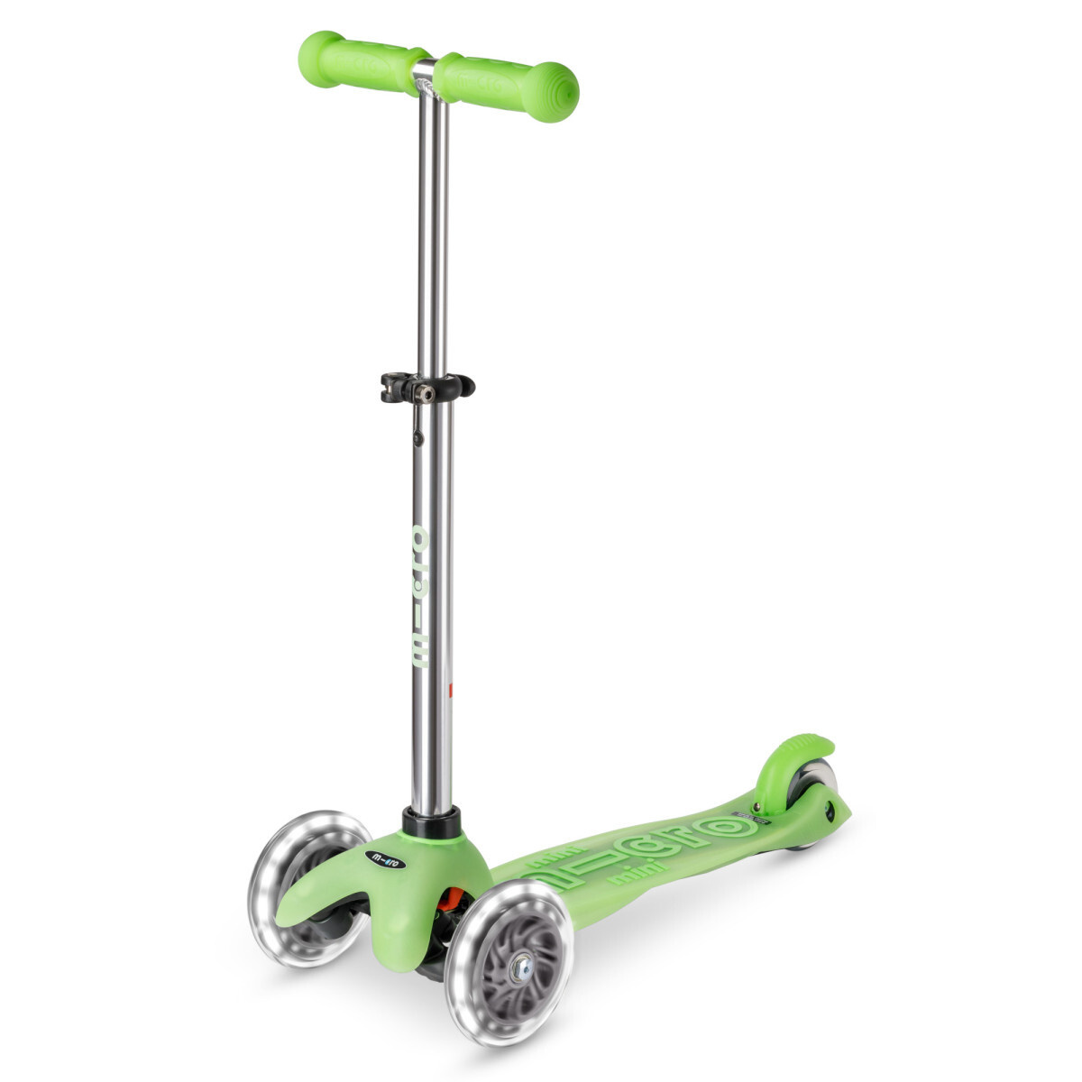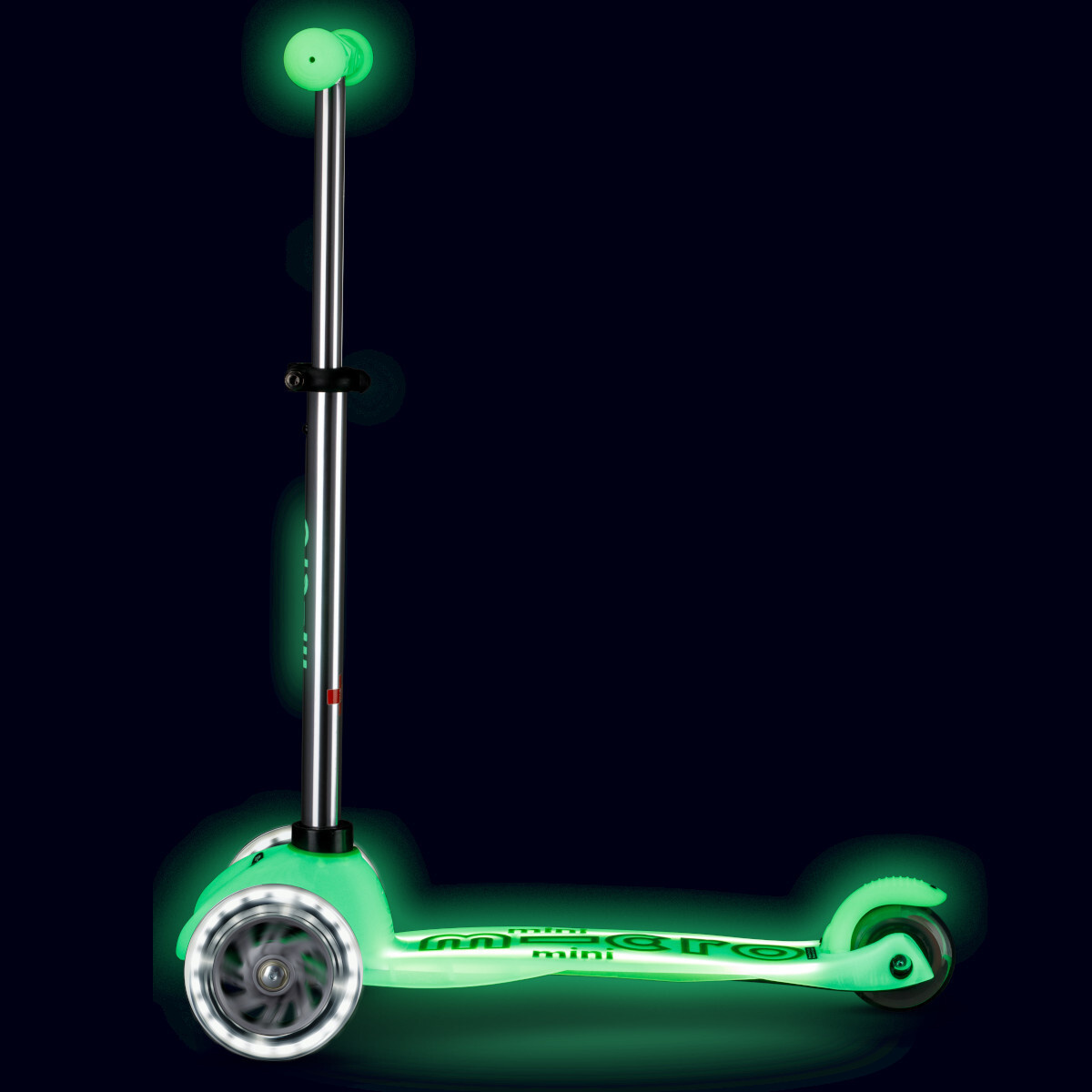 Dětská koloběžka Micro Mini DeLuxe byla vyvinuta ve spolupráci se švýcarskými lékařskými experty a je určená předškolním dětem ve věku cca od 2 do 5 let. koloběžka zlepšuje rovnováhu, koordinaci a motorické dovednosti, jež napomůžou k přechodu na kolo či jiné prostředky. Hlavními přednostmi je speciální patentovaný mechanismu, který zatáčí nakláněním řídící tyče a lehkým přenesením rovnováhy, výškově nastavitelná řídící tyč, vysoká stabilita pomocí 3 koleček, 2 přední LED kolečka a velice nízká váha. Nášlapná deska, rukojeti řídítek, brzda i nápis Micro na řídítkové tyči se během dne nabíjejí slunečním zářením nebo umělým UV světlem a po setmění jemně září. Model „Plus“ přidává LED podsvícení nášlapné desky, které se aktivuje pohybem zadního kolečka a vytváří tak působivé osvětlení pro jízdu za šera nebo ve tmě.