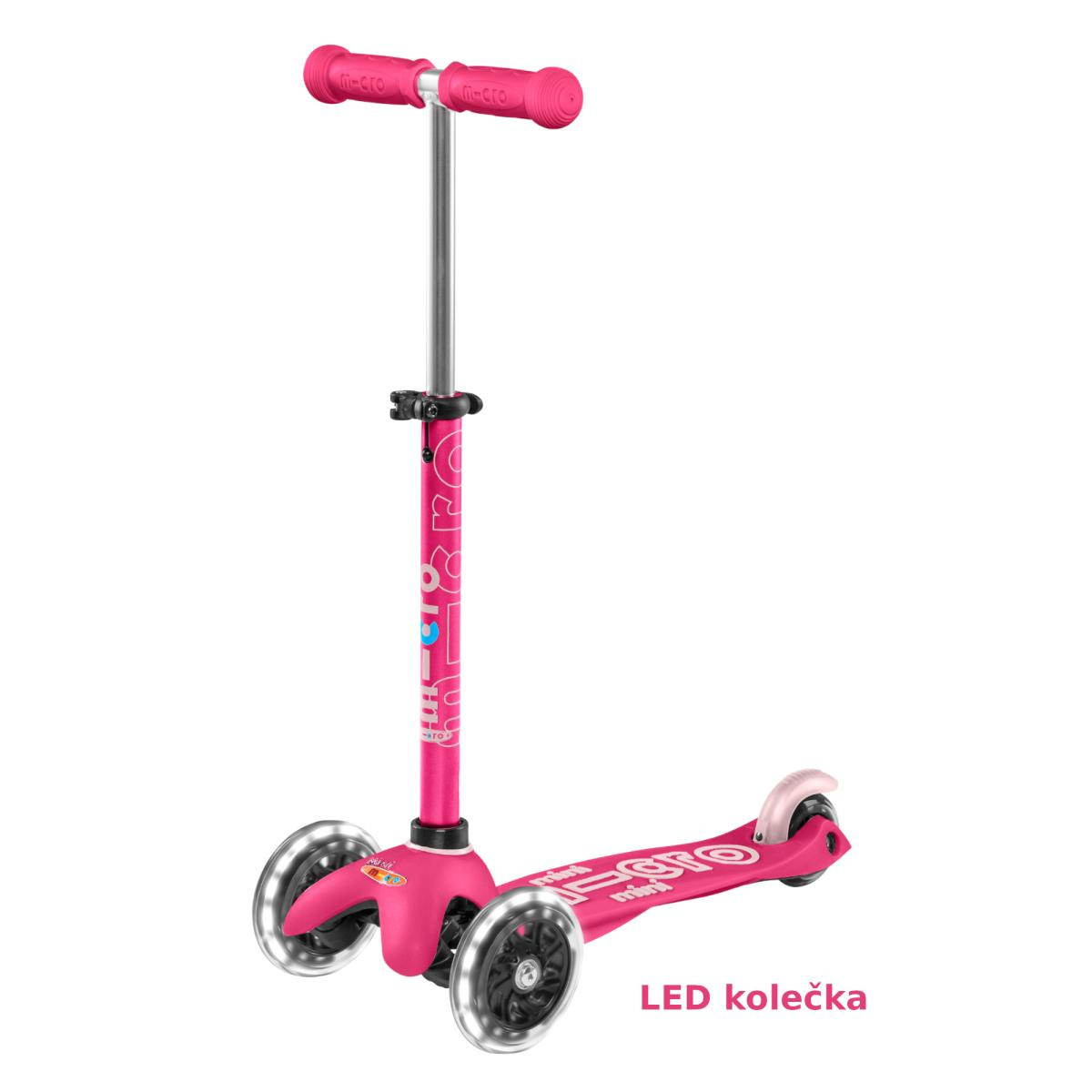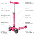 Růžová svítící dětská koloběžka Micro Mini DeLuxe je navržena ve Švýcarsku a je zárukou kvality a dlouhé životnosti.