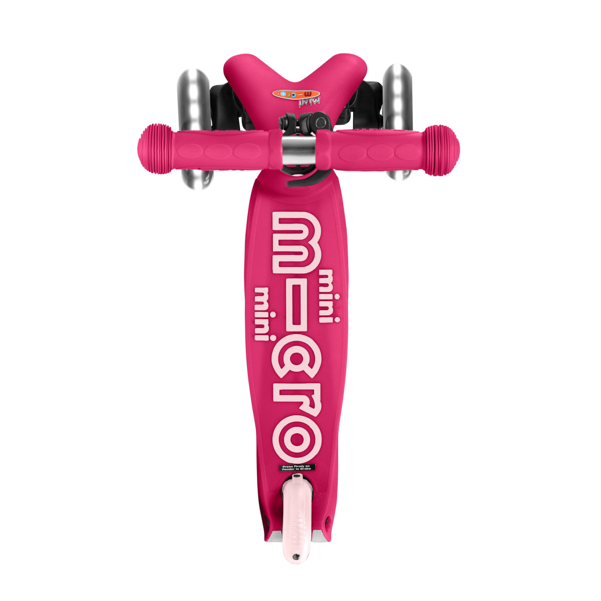kolečka koloběžky Micro Mini jsou vyrobena z měkkého PU, díky čemuž mají dobrou přilnavost a výborně tlumí vibrace vyvolané jízdou. koloběžka je osazena 3 kolečky z důvodu dobré stability a ergonomie při odrazu. Přední kolečka jsou větší (120 mm) a to z důvodu lepšího překonávání nerovností. Obsahují LED světla, která nepotřebují baterii, začnou svítit ve chvíli, kdy se koloběžka rozjede Zadní kolečko je menší (80 mm) a je umístěno uprostřed tak, aby nepřekáželo noze i při velkém odrazu.