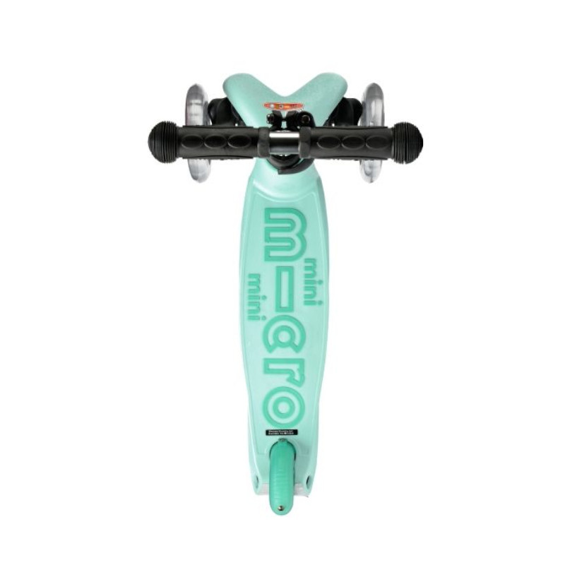 Zelená dětská koloběžka Micro Mini2Go DeLuxe je navržena ve Švýcarsku a je zárukou kvality a dlouhé životnosti.