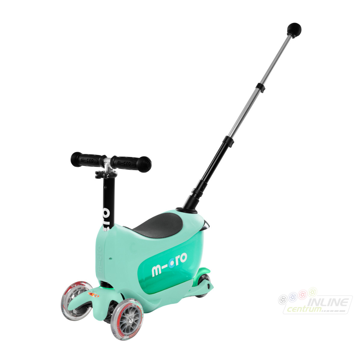 Dětská koloběžka Micro Mini2Go DeLuxe byla vyvinuta ve spolupráci se švýcarskými lékařskými experty a je určená předškolním dětem ve věku cca od 1,5 do 5 let. koloběžka zlepšuje rovnováhu, koordinaci a motorické dovednosti, jež napomůžou k přechodu na kolo či jiné prostředky. Hlavními přednostmi je speciální patentovaný mechanismu, který zatáčí nakláněním řídící tyče a lehkým přenesením rovnováhy, kapotový sedák, který lze z koloběžky odmontovat, zadní vodící tyč, díky které můžete převzít kontrolu nad trojkolkou, výškově nastavitelná řídící tyč, vysoká stabilita pomocí 3 koleček a velice nízká váha.