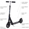 Řídítka nejsou sklopná, ale jsou pevně přišroubovaná, čímž ještě více zvyšují bytelnost této koloběžky. Řídítková tyč je vysouvací a nastavitelná ve velkém rozsahu od 84 do 106 cm.
