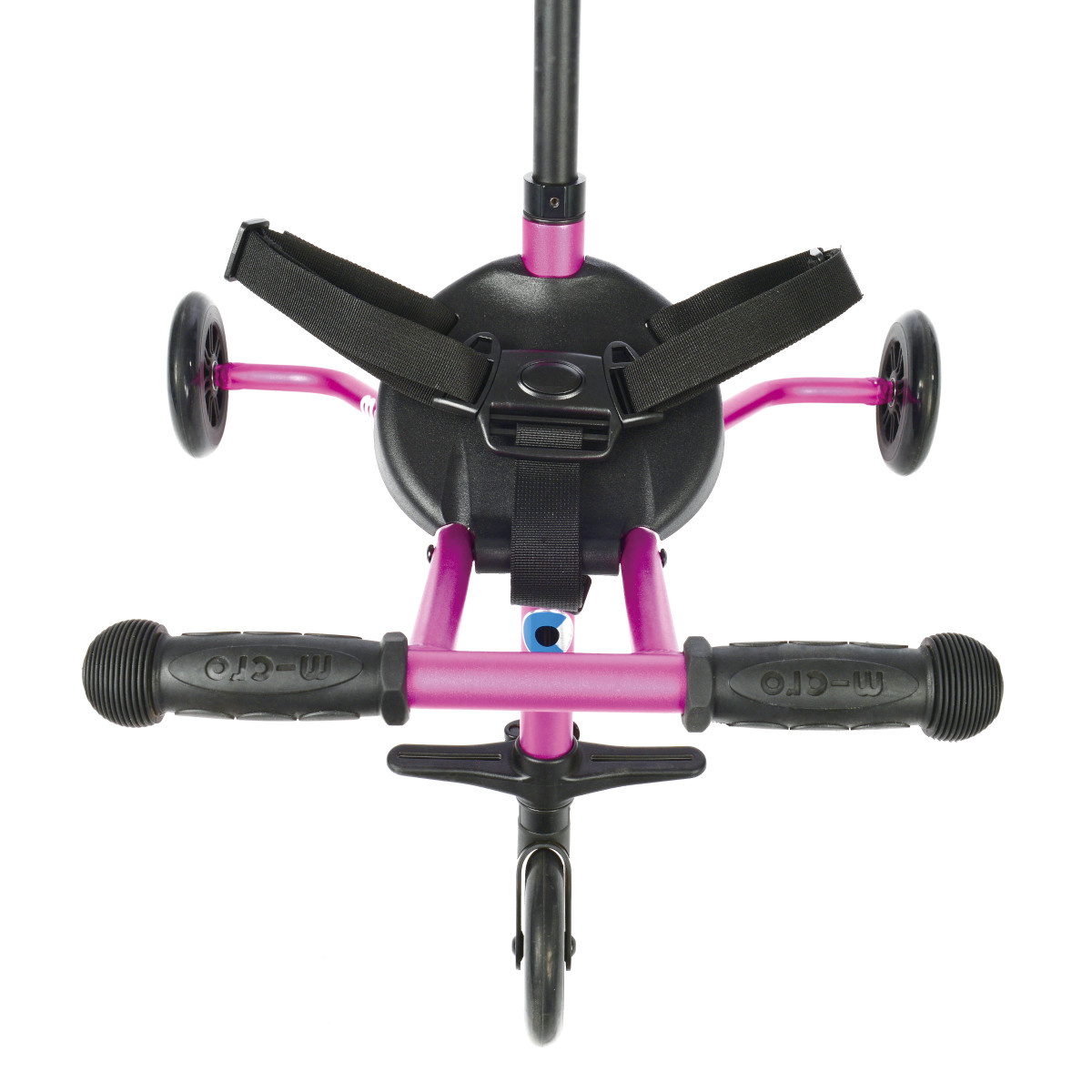 Micro Trike lze díky promyšlenému systému skládání velmi snadno přenášet. Můžete ho jednoduše složit do kufru vašeho automobilu, nést v ruce, zavěsit na nákupní vozík, pověsit ve školce, nebo nosit zavěšený na batohu.