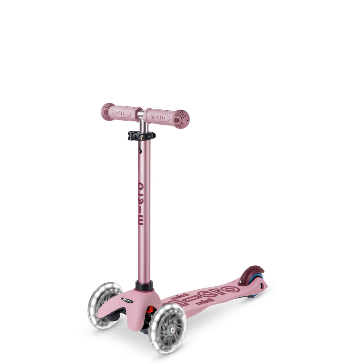 Mini Micro DeLuxe Rock & Go LED v elegantní růžové barvě je první koloběžka na světě, která spojuje houpání a jízdu v jednom chytrém a promyšleném produktu.