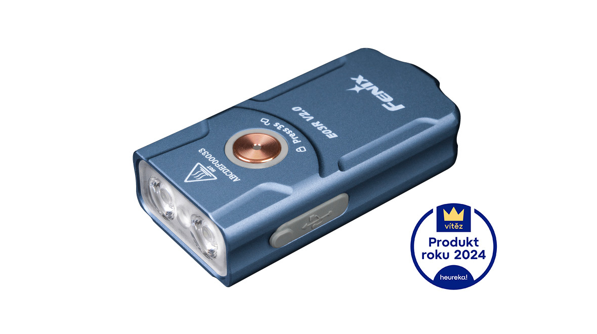 Fenix E03R V2.0 je nástupce úspěšné miniaturní nabíjecí svítilny, kterou lze nosit na klíčích nebo v kabelce. I přes minimální rozměry a váhu pouhých 30 gramů nabízí vysoký světelný tok až 500 lumenů (ANSI). Světelný kužel rovnoměrně osvětluje široký prostor až do vzdálenosti 90 metrů. K napájení slouží integrovaný Li-pol akumulátor s kapacitou 400 mAh, který se nabíjí přes moderní USB-C konektor na boku svítilny. K dispozici jsou celkem čtyři režimy bílého světla a dva režimy červeného světla s maximální výdrží až 30 hodin v nejnižším režimu. Jedinečnou novinkou je tzv. Breathing light, pulzující světlo okolo spínacího tlačítka o síle 1 lumen, které využijete pro nenápadnou signalizaci, či identifikaci umístění svítilny. Svítilna je dodávána včetně kroužku pro zavěšení na klíče, takže ji můžete snadno nosit stále u sebe. Praktický je také indikátor stavu nabití baterie v tlačítku. S tímto užitečným dárkem uděláte vždy radost.