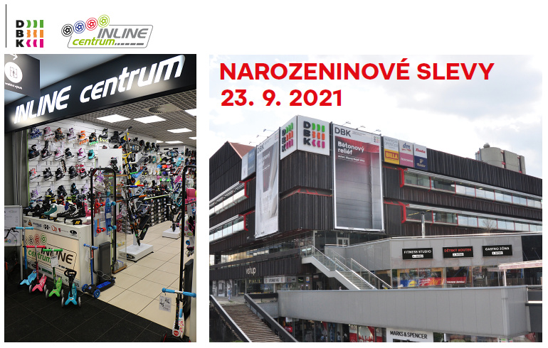 23.9.2021 se můžete těšit narozeninové slevy a soutěže v OC DBK ???? Na naší prodejně inline Centrum v OC DBK pro vás máme připravenou slevu 10% na všechny brusle, skateboardy a koloběžky. Sleva platí i na produkty ve slevě a výprodeji. Pro uplatnění slevy stačí na pokladně nahlásit heslo -NAROZENINY- a sleva je vaše.