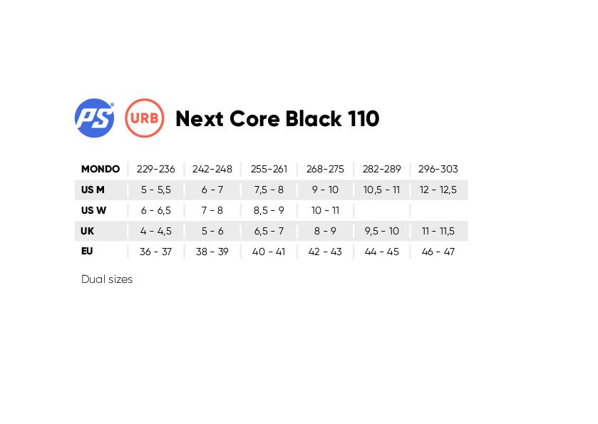 Next Core Black 110 je vybaven TRINITY-kompatibilními Elite hliníkovými rámy, které jsou lehký, odolné a univerzální – ideální pro intenzivní urban freeride bruslení. Rollování na 110mm Spinner kolečkách/88A a hladkých WICKED ABEC 9 ložiskách zajistí rychlou, agilní jízdu a skvělé zážitky z městského freeride inline bruslení.