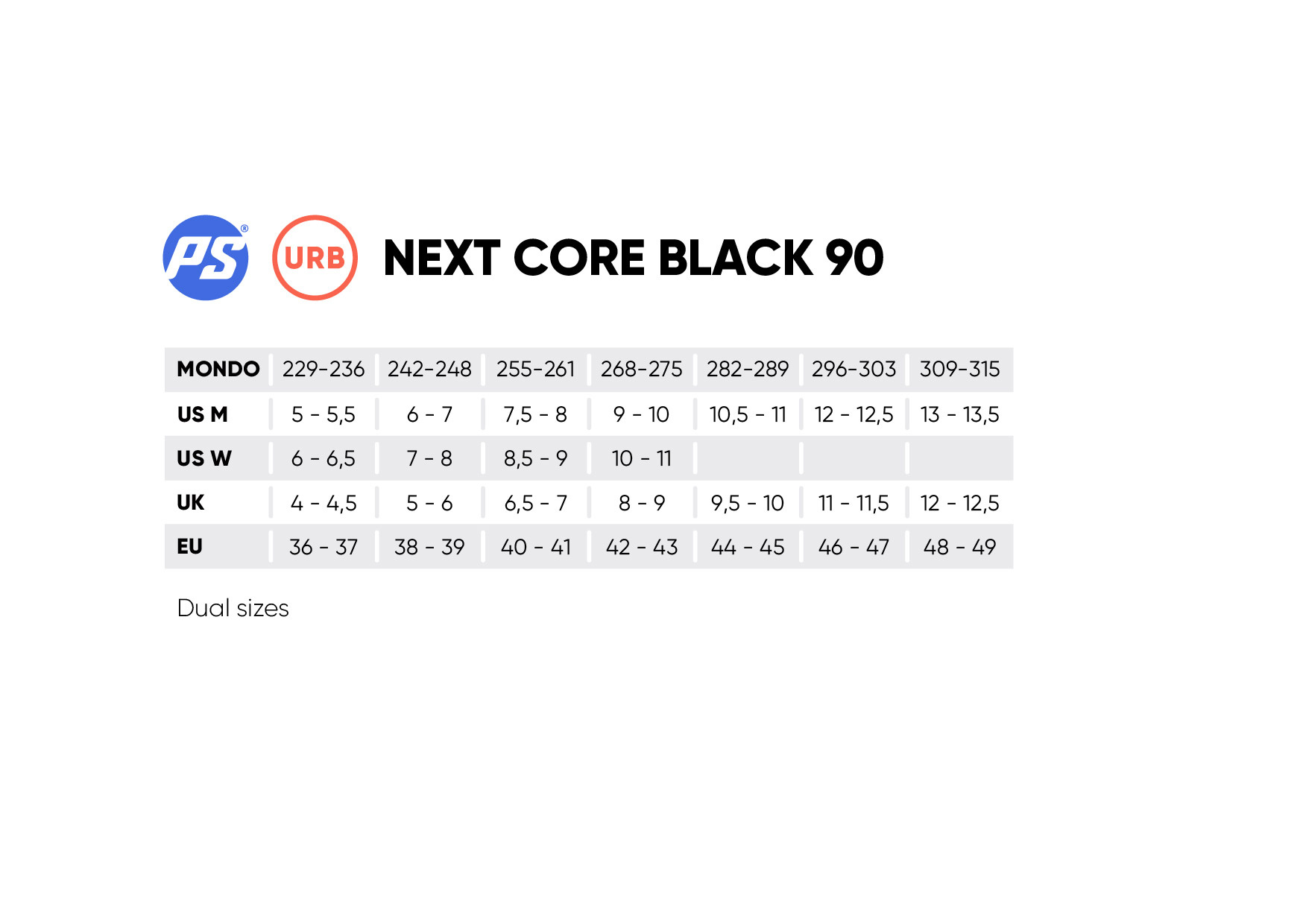 NEXT Core Black 90 jsou univerzální brusle, které vás ohromí už hned po vybalení z krabice. Vybaveny koly Powerslide Spinner 90mm/88A, které jsou skvěle gripující, rychlá a odolná, spolu s ultra hladkými ložisky WICKED ABEC 9, budete mít zábavu při prozkoumávání městských ulic.
