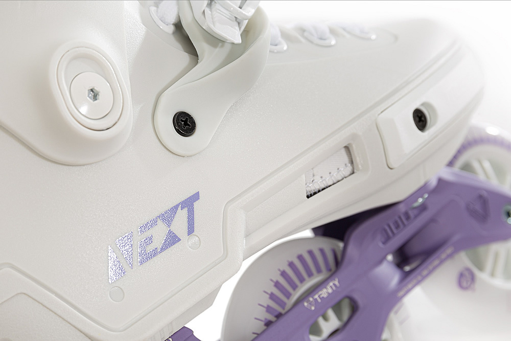 Skelet Next tvoří speciální kompozitový materiál s 15% fiberglassu, který je dokonale pevný a zároveň lehký a dobře odvětraný. Vyndavací vnitřní bota MYFIT Recall vyrobená z paměťové pěny je lehká, vyjímatelná, tepelně tvarovatelná, pratelná a velmi pohodlná. Tato botička je ideální pro intenzivní městské freeride bruslení i na dlouhé fitness a kondiční tréninky, pod patou má vyměnitelný tlumič nárazů MYFIT, který tlumí nárazy při došlapech a dopadech, stejně tak jako vibrace z jízdy. Materiál podšívky z mikrovlákna a zbrusu nový bohatě polstrovaný 3D jazyk zaručují nejvyšší míru komfortu. brusle se dají jednoduše přenášet v ruce za velká poutka.