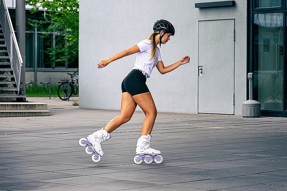 - Podélně i stranově nastavitelný podvozek zajišťuje možnost individuálního nastavení bruslí