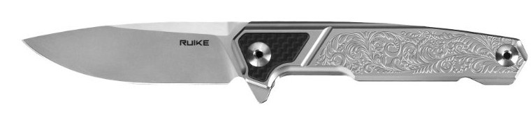 Kompaktní zavírací nůž Ruike P875-SZ je opatřen gravírovanou ocelovou střenkou s karbonovou inlayí. Čepel je vybavena páčkou flipper pro rychlé a pohodlné otevření. Proti nechtěnému zavření je nůž opatřen pojistkou frame lock, kterou lze zajistit zámkem beta lock. Nůž je vybaven sponou pro uchycení v kapse a je ideální pro každodenní nošení (kategorie EDC).