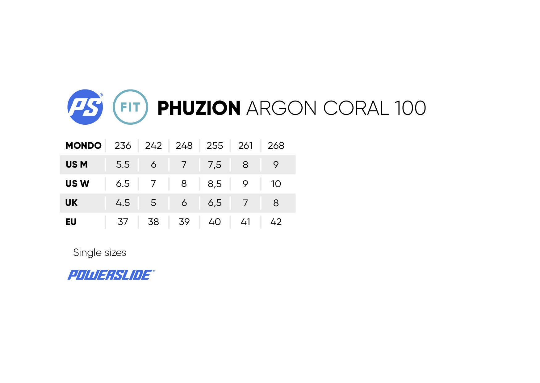 Powerslide PHUZION Argon Coral 100 je rychlá, zábavná a schopná inline fitness brusle, vybavená sofistikovaným uzavíracím systémem, který zahrnuje tradiční šněrování, silnou přezku na kotník a 45° ratchet přezku, která pevně zajišťuje vaši patu pro lepší kontrolu a komfort.