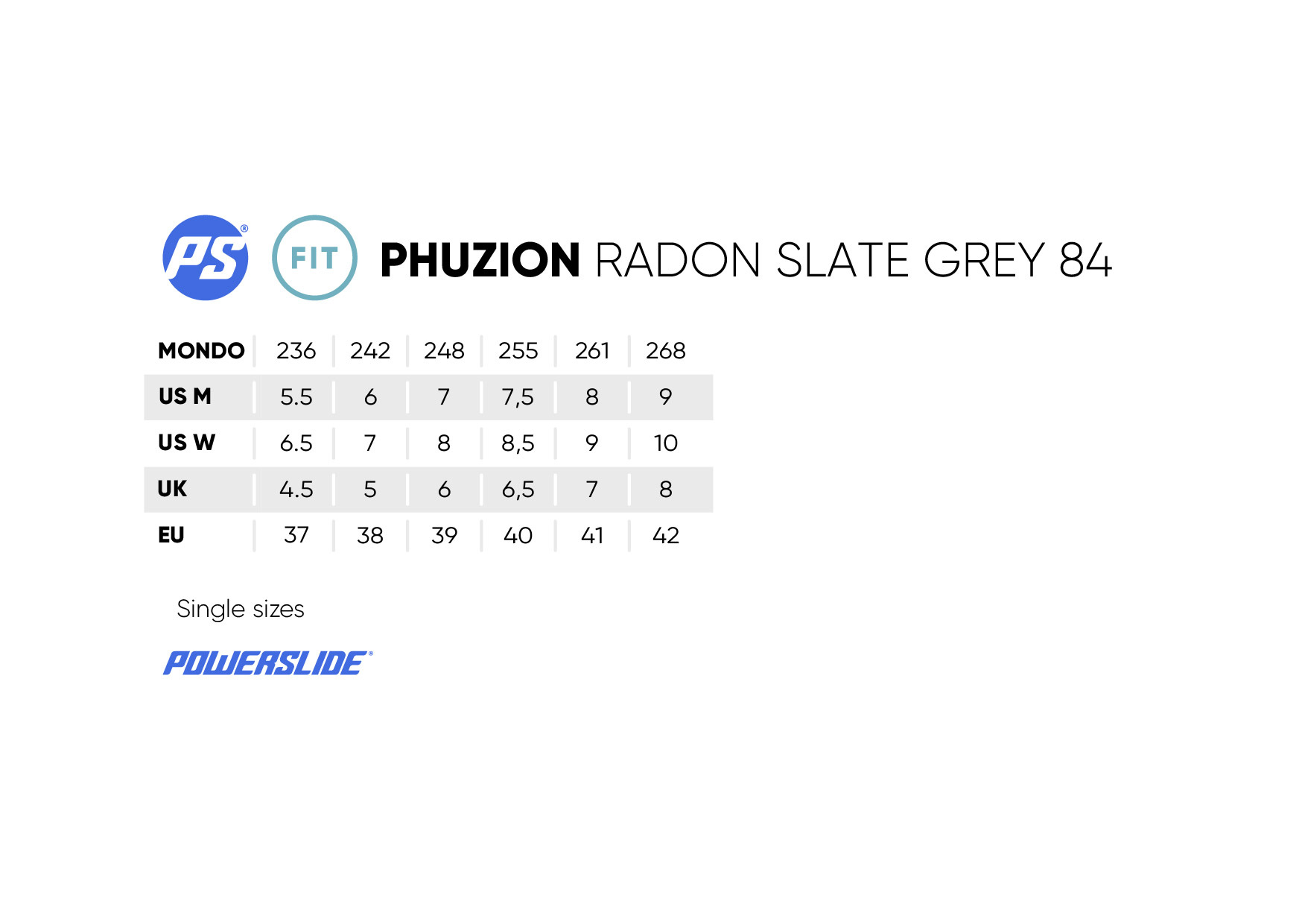 Powerslide PHUZION Radon Slate Grey 84 Sportstyle Fitness inline skates