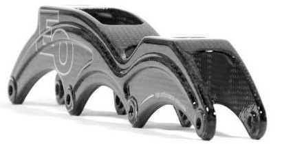 c) Karbonový rám - karbonové rámy se používají jen na nejvyšší modely závodních a freestylových bruslí. Výhodou karbonového rámu je především nízká váha, často se proto používají pro sprinterské disciplíny. Nevýhodou je vysoká cena, nižší nosnost a tuhost oproti nejdražším a nejpevnějším kovovým závodním rámům.