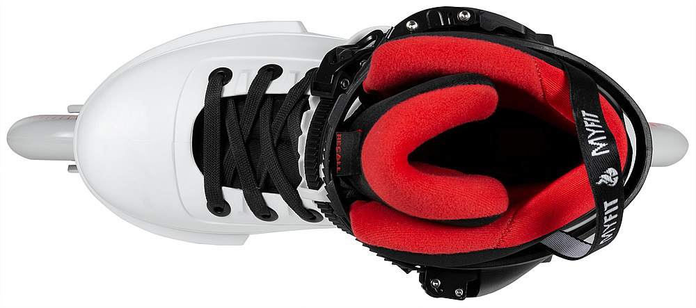 Upínání brusle je zajištěno klasickými tkaničkami a pevnými nártovými a vrchními přezkami s pojistkou proti nechtěnému rozepnutí. Úhly upínacích prvků a kloubu jsou pečlivě nastaveny tak, aby napomáhaly zvýšit komfort při zachování pevného a jistého upnutí nohy. Brusle se dají jednoduše přenášet v ruce za velká zpevněná poutka.