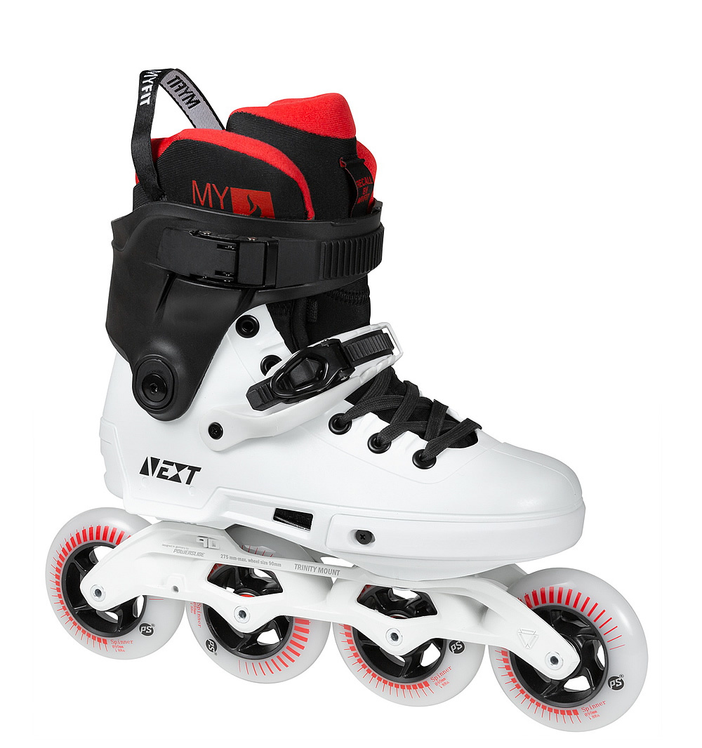 Kolečkové brusle Powerslide Next Black White 90 Trinity jsou ideálním dopravním prostředkem do města a zároveň rychlé, pohodlné brusle na běžné projížďky po cyklostezkách. Pevná a odolná skeletová bota poskytuje dokonalé vedení nohy a vysokou míru boční podpory. brusle nabízí výbornou ovladatelnost a stabilitu. Špičkový rám trinity dáva bruslí náskok před konkurencí a zajištuje nižší těžiště a lepší kontrolu nad bruslí. Brusle je osazena hliníkovým rámem Trinity, vysoce kvalitními ložisky ABEC 9 (při výrobě ložisek byl použit japonský olej Kyodo) a čtyřmi 90mm kolečky Spinner 88A umožňujícími rychlou jízdu.