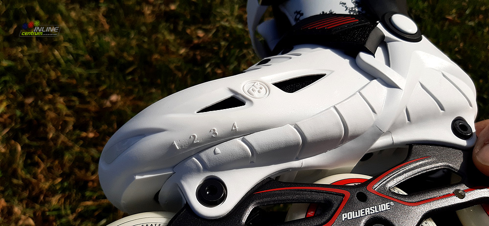 brusle se jednoduše nazouvá díky technologii Easy Slip In, která vychází z dlouholetých zkušeností firmy Powerslide. Při nazouvání se výborně hodí velké poutko na zadní části brusle. Základní utažení bruslí je zajištěno oblíbeným klasickým šněrováním s pevnými očky, poté se noha zajistí dlouhým suchým zipem a dotáhne pevnou přezkou s pojistkou proti nechtěnému rozepnutí.