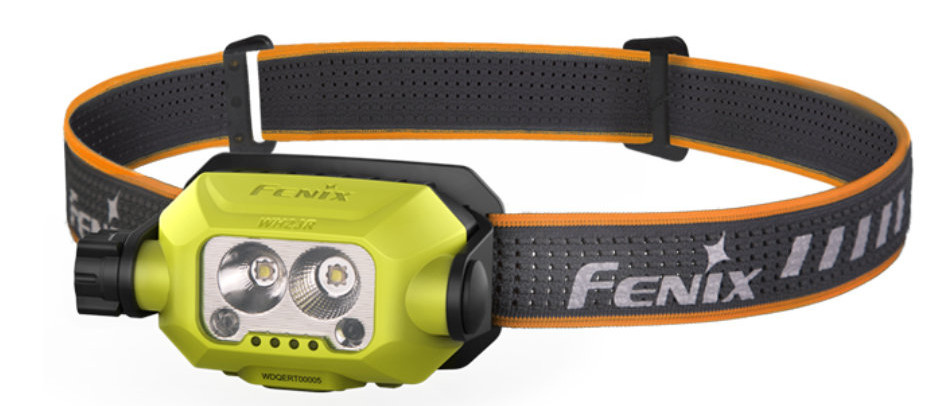 Fenix WH23R je nabíjecí pracovní čelovka, která se vyznačuje vysokou odolností proti pádu, unikátní konstrukcí se dvěma reflektory a funkcí pro bezdotykové zapínání a vypínání. Dálkový reflektor vytváří mírně zaostřený světelný paprsek s dosvitem až 84 metrů a druhý reflektor má světelnou stopu velmi širokou a plynulou. Světelný tok každého reflektoru je až 300 lumenů a jejich světlo lze v turbo režimu zkombinovat do celkového výkonu 600 lumenů. Na boku čelovky je otočný ovladač, kterým lze volit čtyři polohy: vypnuto - dálkový reflektor - široký reflektor - turbo režim. V polohách širokého a dálkového reflektoru lze přepínat tři stupně výkonu tlačítkem, které je ukryté v otočném ovladači.