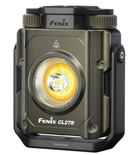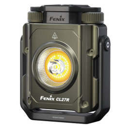 Fenix CL27R je multifunkční nabíjecí lucerna a svítilna. Navíc skvěle funguje i jako nabíjecí pracovní světlo, světlo pro fotografy i jako světlo do domácnosti a do stanu či auta. Vysoce jasná COB dioda poskytuje široký světelný kužel s výkonem až 1200 lumenů (ANSI), jehož intenzitu a odstín světla lze plynule regulovat otočnými ovladači. Dále je k dispozici dálkový reflektor s výkonem 800 lumenů a dosvitem 177 metrů a červené světlo. Dálkový a široký reflektor lze zkombinovat a získat výkon až 1600 lumenů. CL27R je napájena jedním Li-ion akumulátorem typu 21700 s kapacitou 5000 mAh (součást balení). Baterie se nabíjí přímo v lucerně pomocí USB-C konektoru.