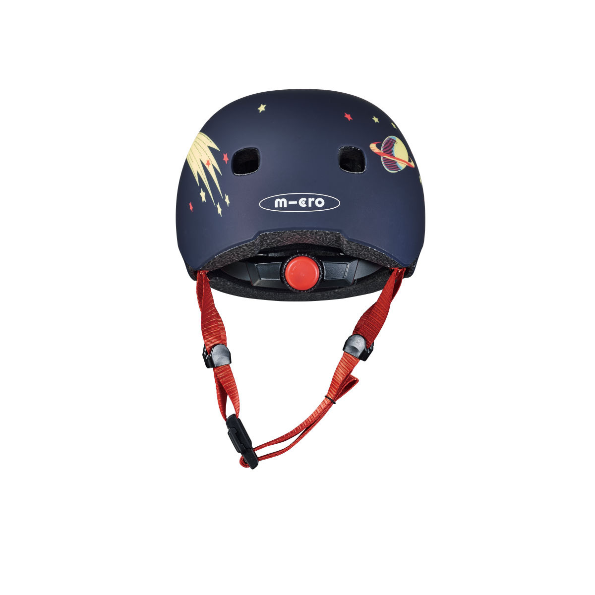 Bezpečná dětská helma na koloběžku od švýcarské značky Micro s nastavitelnou velikostí pomocí upínacího kolečka. helma je vhodná nejenom pro jízdu na koloběžce, ale i na dětském odrážedle, kolečkových bruslích a skateboardu. Extra polstrování uvnitř helmy pro větší komfort a bezpečí. 8 větracích otvorů zajistí kvalitní odvětrávání hlavy. Inovativní magnetický systém zapínání výrazně zvyšuje bezpečnost a zjednodušuje zapínání řemínku pod bradou. helma má LED světlo se třemi režimy (2 varianty blikání, 1x svícení). Baterie (CR1632 3 V) je vyměnitelná otočením červené krytky za pomoci větší síly.