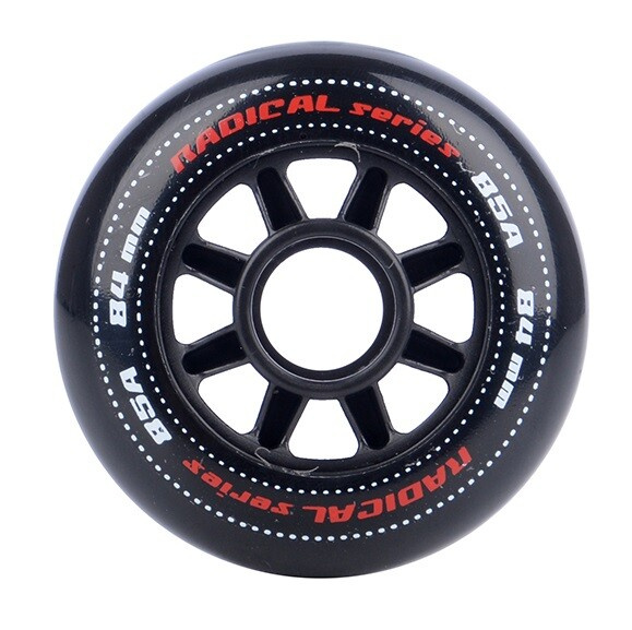 inline kolečka Tempish Radical 84 mm jsou velmi kvalitní a odolná kolečka s pevným, ale zároveň houževnatým jádrem. kolečka jsou z polyuretanu, bílá o tvrdosti 84 A a černá o tvrdosti 85 A, s extrémně malým valivým odporem a prodlouženou životností. kolečka jsou vhodná pro rekreační a sportovní fitness bruslaře.