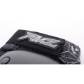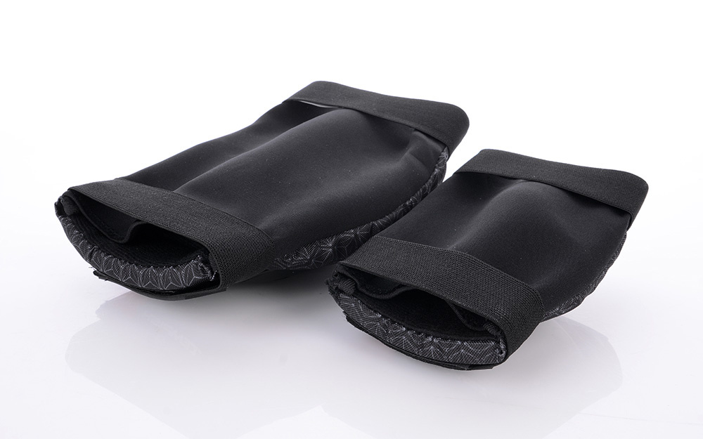 Vnější pevný chránič z houževnatého plastického materiálu dobře chrání klouby při nárazech. K textilní části jsou připevněny za pomocí 3 párů velkých nýtů. Vnitřní silná pěnovka intenzivně a spolehlivě tlumí nárazy a omezuje zranění. Vnitřní vybrání v pěnové bandáži zabraňuje samovolnému posunu chrániče, zajišťuje jeho správnou polohu a tím tu největší ochranu.