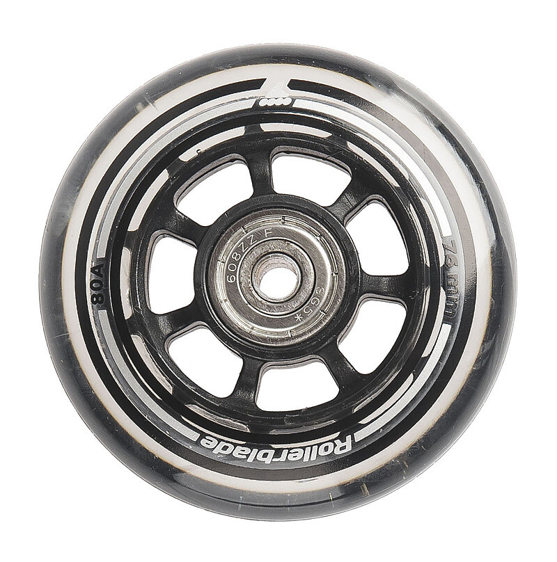 Kolečka v kvalitě originálního obutí katalogových modelů Rollerblade. Velmi pohodlná kolečka s tvrdostí 80A a velikostí 76mm, kvalitní polyuretanové složení přispívá k dlouhé životnosti a tlumí vibrace.