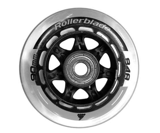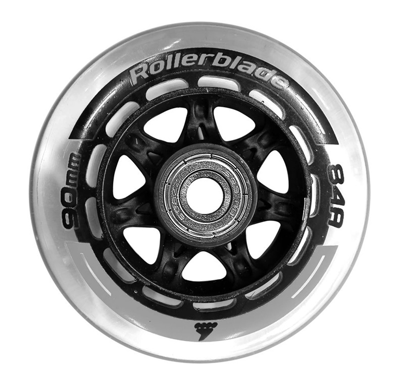 kolečka v kvalitě originálního obutí katalogových modelů Rollerblade. Velmi pohodlná kolečka s tvrdostí 84A a velikostí 90mm, kvalitní polyuretanové složení přispívá k dlouhé životnosti a tlumí vibrace.
