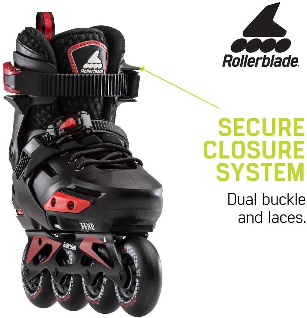 brusle stáhnou klasické tkaničky a bezpečí zajistí uzamykatelná přezka nad kotníkem. Ráčnová přezka přes nárt perfektně zafixuje patu v brusli a zamezuje pohybu nohy, což zajistí lepší přenos energie a zabrání vznikání puchýřů a oděrek, které při špatném dotažení bruslí mohou vznikat.
