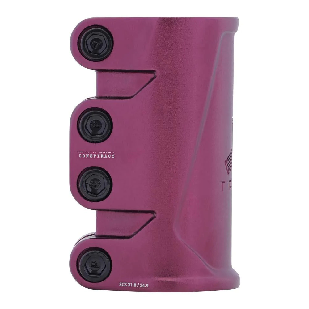 Triad je australská značka složená nejlepšími jezdci po celém světě. Conspiracy je nová modelová řada, kterou navrhnuli a otestovali samotní jezdci. Hmotnost celého SCS je 235 gramů a to právě díky tomu že je vyráběna z kvalitního hliníku 6061 se stupněm pevnosti T6. Do SCS se vám vejdou jak standard (32 mm) tak i oversized (35 mm) řidítka a to právě díky SHIMU, který je součástí balení včetně SCS top capu a kompresního šroubu.