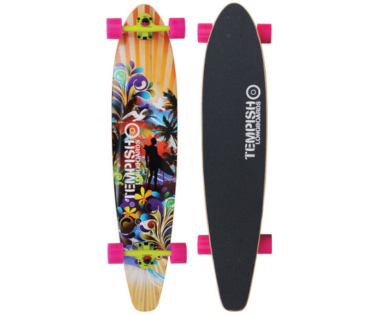 longboard Tempish Sense - longboard SENSE je typickým představitelem z kategorie "MINI CRUISER" - deska má stále klasický tvar PINTAIL, ale je rozměru 42". Díky použitému bambusu v desce ve spojení s Kanadským javorem má neskutečně čitelné a komfortní naladění. longboard SENSE zasahuje do stále více oblíbené katagorie "UNIVERSAL". Perfektně si s ním užijete ve městě při brouzdání kdekoliv, ale můžete ho vytáhnout i na nedaleký kopec a střihnout si downhill, díky měkčím kolečkům 80A perfektně sedí na silnici. A když to zvládnete, můžete zkusit i nějaký ten slide pro efekt !