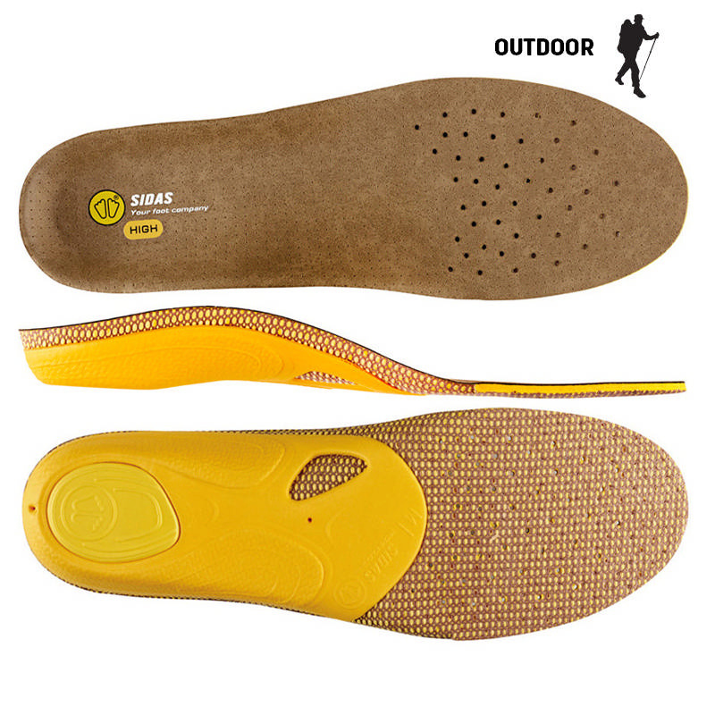 Nová konstrukce outdoorových vložek Sidas. Skelet je přizpůsoben vysoké klenbě (3,4 cm), pružná a lehká komfortní konstrukce pro přirozený pohyb chodidla. Odolný a prodyšný materiál spolu s perforací pod přednožím dobře odvádí vlhkost, patní EVA polštář a anatomicky tvarované patní lůžko chrání nohu a tlumí nárazy. vložka svou 3D konstrukcí, podporou podélné a příčné klenby optimálně rozloží tlak na celou plosku chodidla.