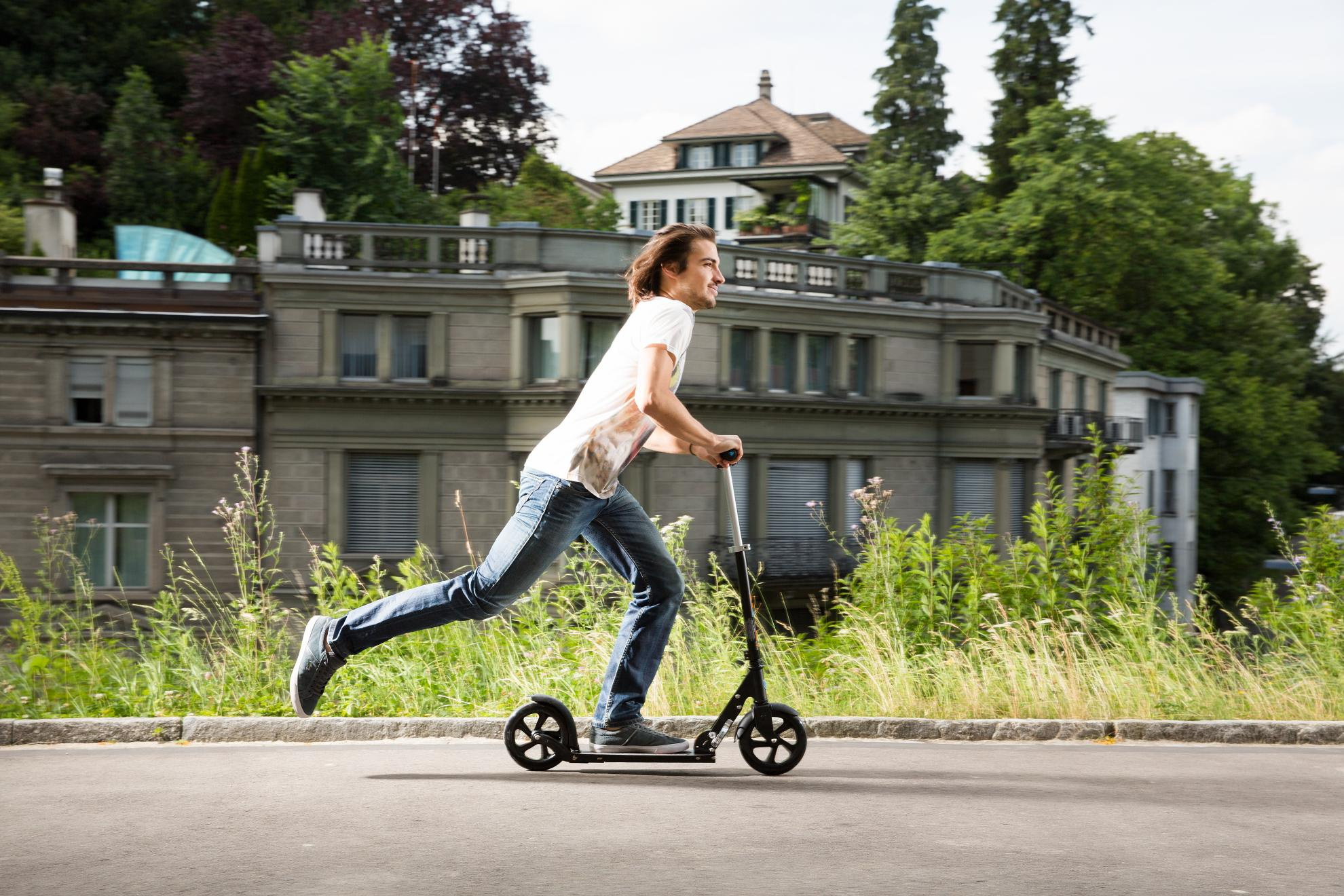 Černá koloběžka Micro Black je navržena ve Švýcarsku a je zárukou kvality a dlouhé životnosti.