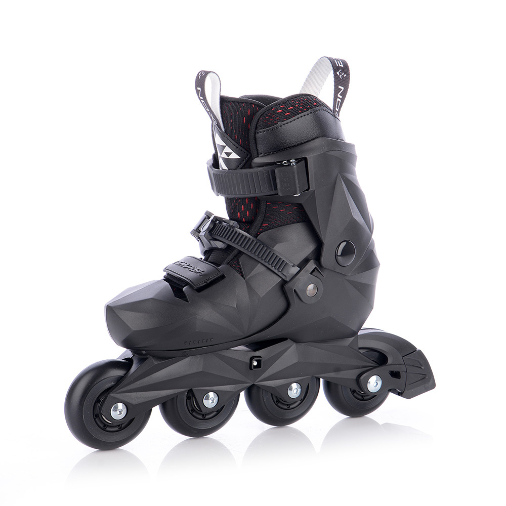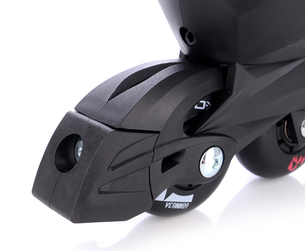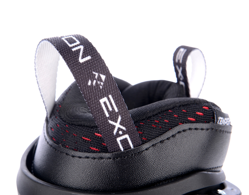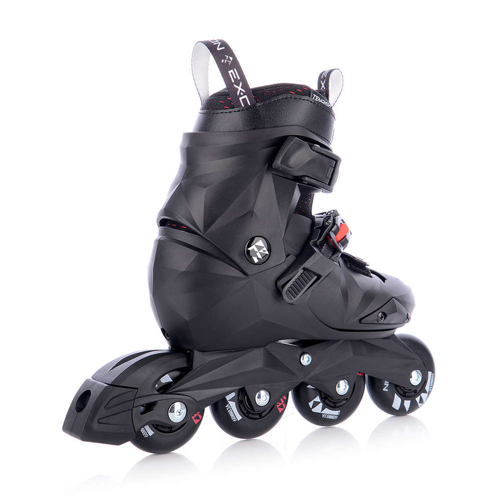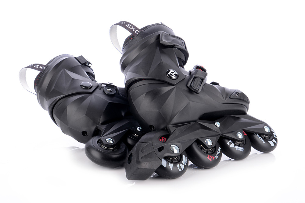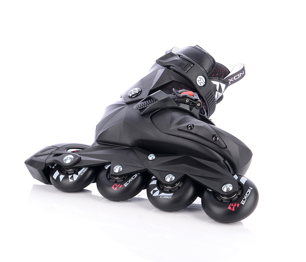 Dětské roztahovací brusle Tempish EXON jsou určené pro sportovní i rekreační bruslení. Střední a vysoká zátěž, vhodné pro začínající i pokročilé bruslaře. brusle mají jednoduchý a pohodlný systém nastavení velikosti pomocí inbusového klíče (vel. 4) na patní části skeletu. Botu je díky tomu možno přenastavit na požadovanou velikost v daném rozmezí po milimetrech, nikoli po celých číslech. Plastový skelet brusle je velmi robustní a poskytuje výraznou oporu při bruslení. Mezi druhým a třetím kolečkem se nachází mechanismus pro nastavitelné zpomalování rychlosti bruslení, díky čemuž se děti mohou postupně zdokonalovat a učit se bruslit. Vnitřní botička (liner) je silně vyztužen a bohatě polstrovaný. Nártový pásek je s mikropřezkou, která zajistí pevné dotažení a usazení chodidla v botě. Vnější nártové chrániče jsou připevněny dvěma šroubky a při poškození je možno je vyměnit.