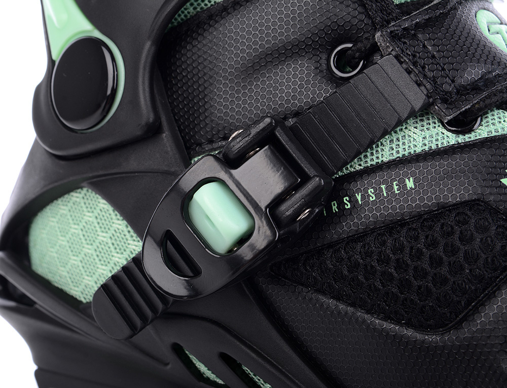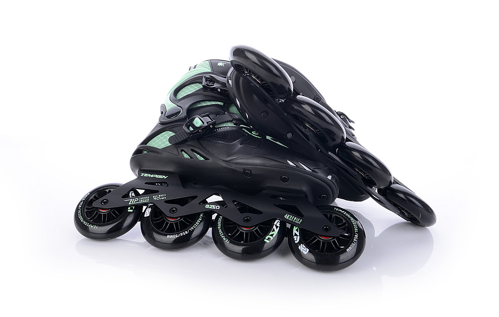 U dámských kolečkových bruslí Tempish EZZA LADY 90 pokračujeme v použití osvědčeného skeletu, který má výborný tvar a stále atraktivní design s dvoubarevným a dvouvrstvým cuffem. Skelet brusle je středně vysoký, pohyblivá část nad kloubem je zpevněná a tvořená dvěma oddělenými částmi.