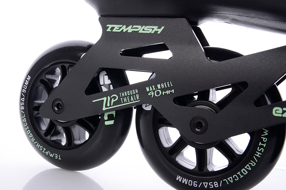Podvozek fitness bruslí pro ženy Tempish EZZA LADY 90 je vyrobený technologií CNC. Uchycení podvozku centrálními šroubymožností podvozek vychýlit mimo osu – pro ideální nastavení dle stylu bruslení a rozdílné anatomické stavby chodidla (celé nohy) uživatele v přední i zadní části. Podvozek je velmi lehký, ale tuhý. Osky jsou šroubované vždy z pravé strany na obou bruslích – zajišťují bezpečnost – není možné odtažení za jízdy. Single axle osky s průměrem 8mm se závitem pro rychlou a jednoduchou demontáž koleček.