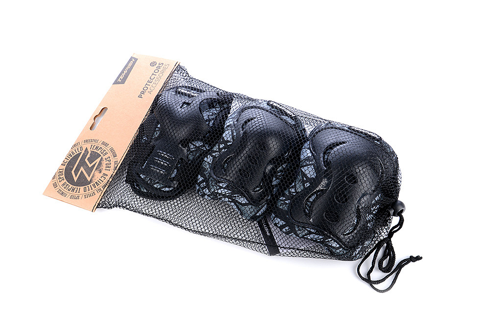 Univerzální 3-sada chráničů na kolena, lokty a zápěstí. Flexibilní konstrukce chrániče a jeho plastové výztuhy velmi pohodlně "padnou" na chráněné části těla. Jsou velmi lehké a minimálně omezují v pohybu. Vrchní materiál je odolný proti otěru. Vnitřní materiál výborně odvádí pot a vlhkost z těla. Elastický materiál se přizpůsobuje dle pohybu bruslaře.