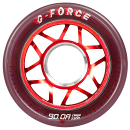 The Chaya G-Force Alloy Grippy is a high-quality wheel built and designed with roller derby in mind at an affordable price. At the perfect size and hardness for roller derby (59mm,90A) this wheel benefits from a stiff aluminum hub which means there is no flex in the wheel resulting in increased power transfer and roll. The highlight of this wheel is the added urethane lip that ensures snappy lateral movement across the track as well as greater push in your strides. Chaya G-Force Alloy wheels are available in four different hardness - 90A, 92A, 94A, and 96A.